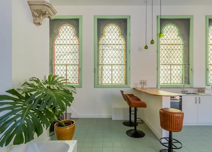Bu 1 yatak odalı Le Loft De La Chapelle Sainte Blandine dairesi, place Saint-Louis'a kolay erişim sunmaktadır.